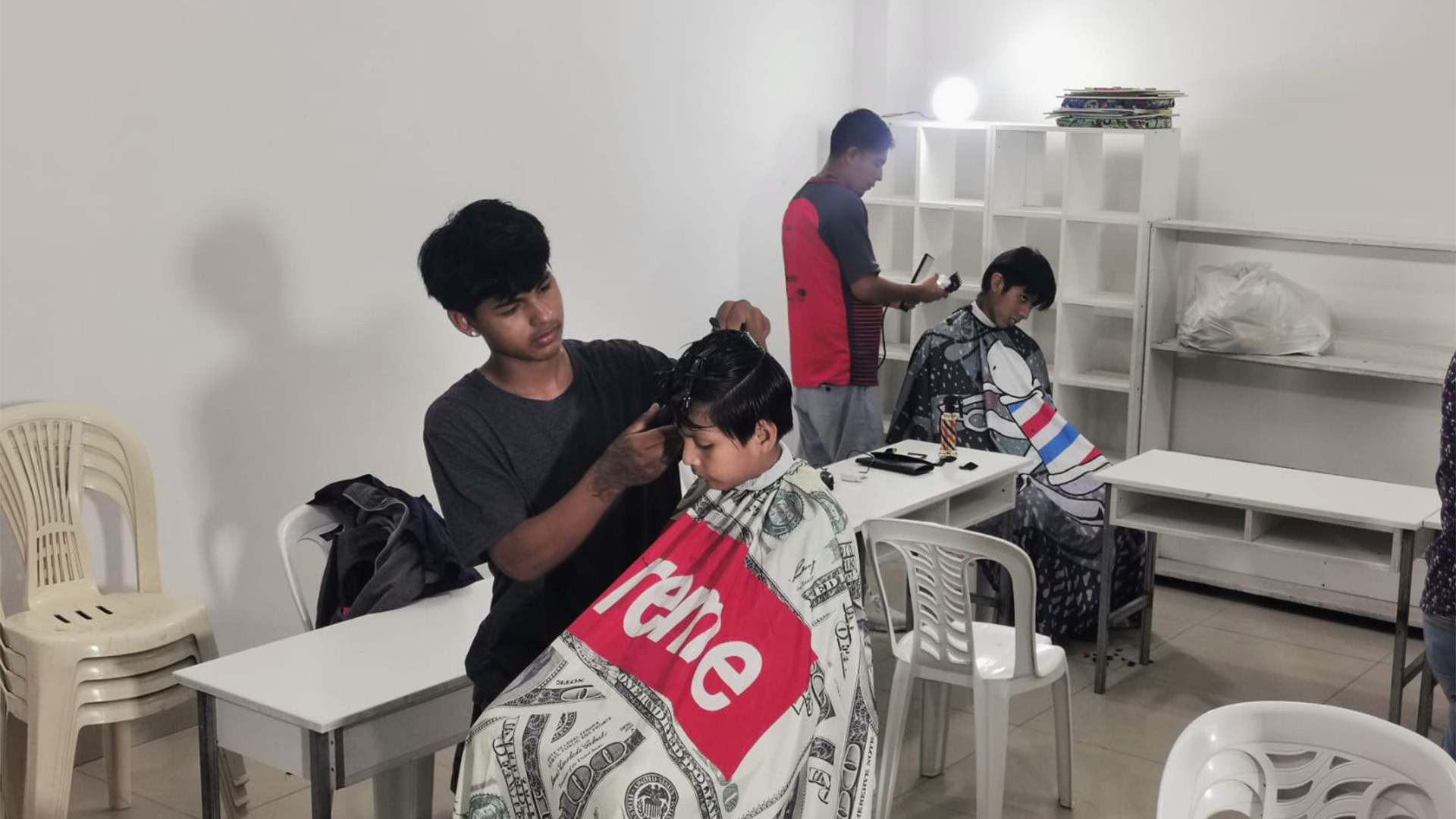 Barbering: We're thrilled to have our largest group, 20 aspiring barbers, honing their skills each week with hands-on practice with locals.