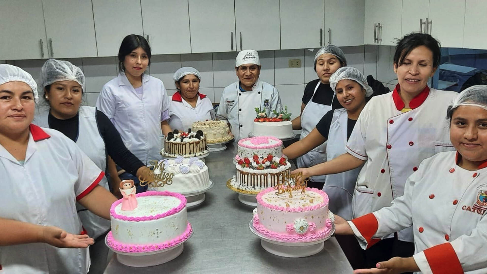 The Baking and Pastry Program at the Life Resource Center is a vibrant, hands-on course led by a professional chef who guides students through the art and science of baking. Over several months, students learn to create both sweet and savory Peruvian favorites—such as alfajores (dulce de leche sandwich cookies), picarones (Peruvian doughnuts), empanadas, petipanes, and anise-flavored breads like Chancay and Karamanduka. They also develop techniques in cake baking and decoration, working up to a final project where they showcase their skills by designing and presenting beautiful celebration cakes.